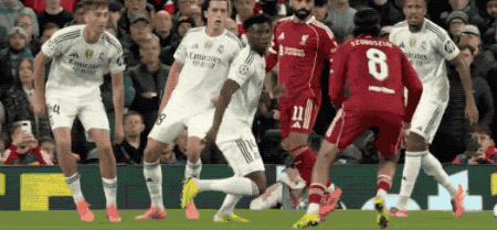 第61分钟,贝林厄姆身后放倒赫拉芬贝赫,利物浦获得位置不错的任意球,索博斯洛伊将球开出,麦卡利斯特抢点头球,这一次,库尔图瓦无能为力了。